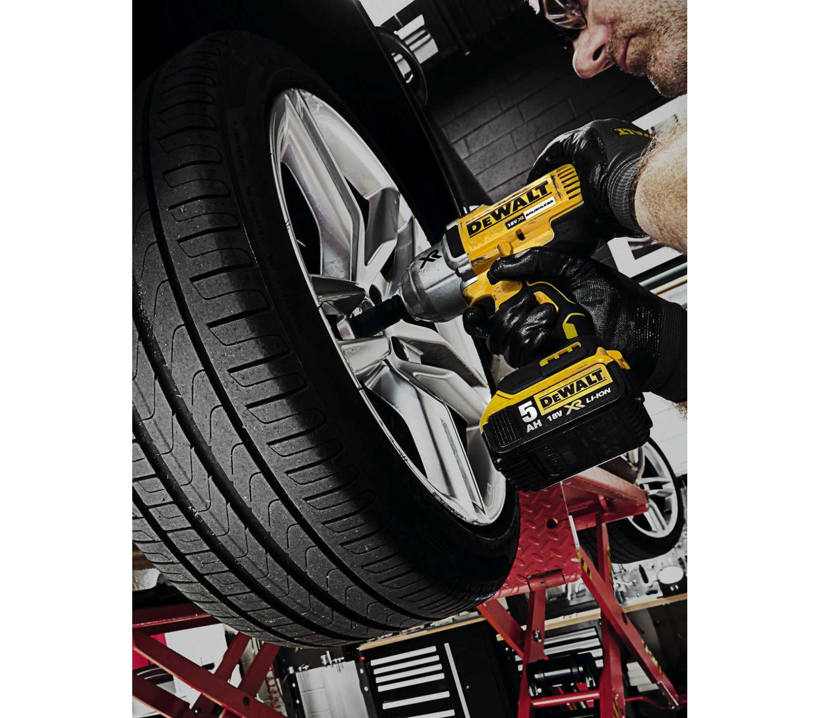 Dewalt akumuliatorinis smūginis veržliasukis DCF899N-XJ su 18V XR bešepečio variklio technologija ir 950 Nm sukimo momentu yra sukurtas galingiems darbams.