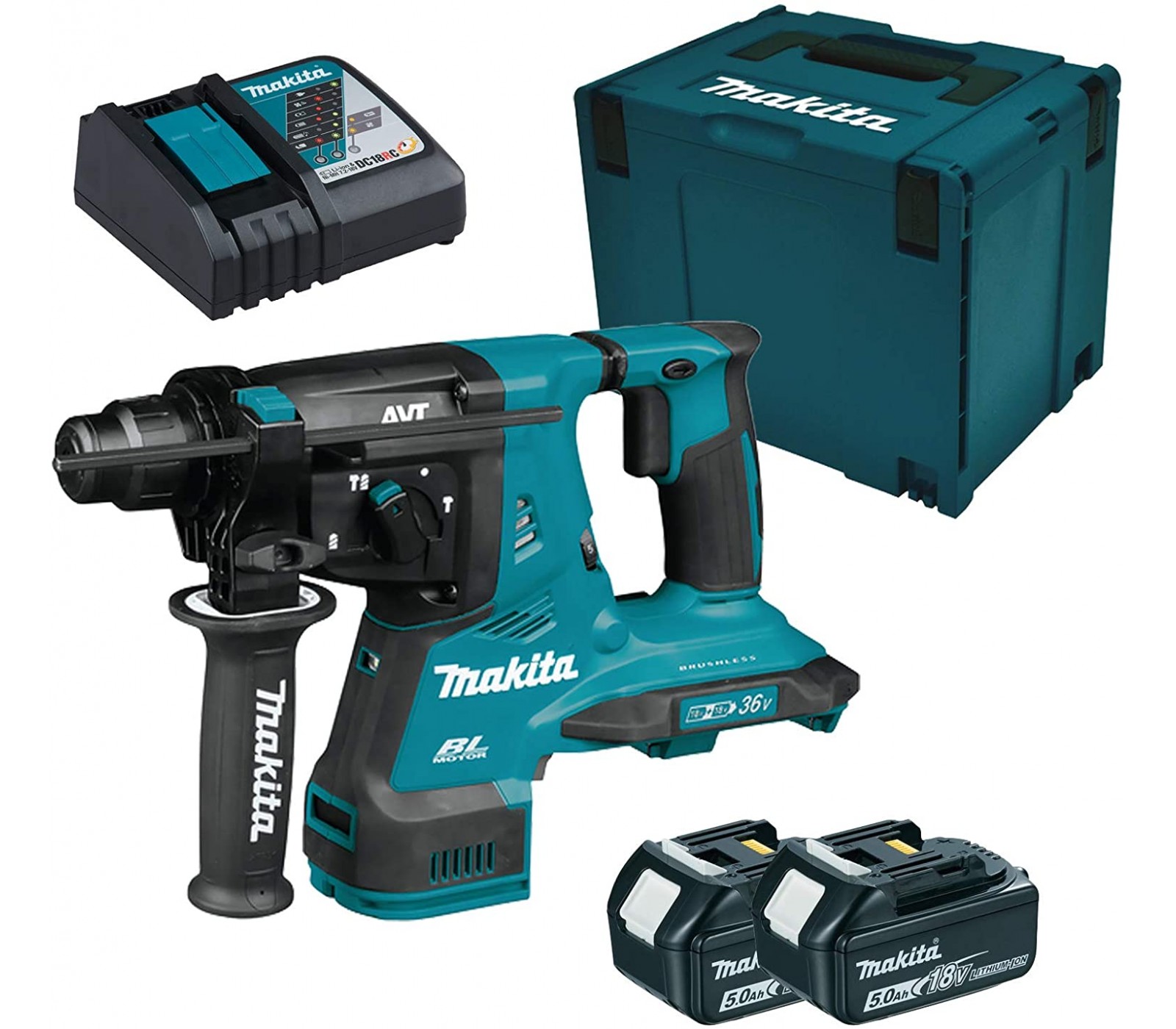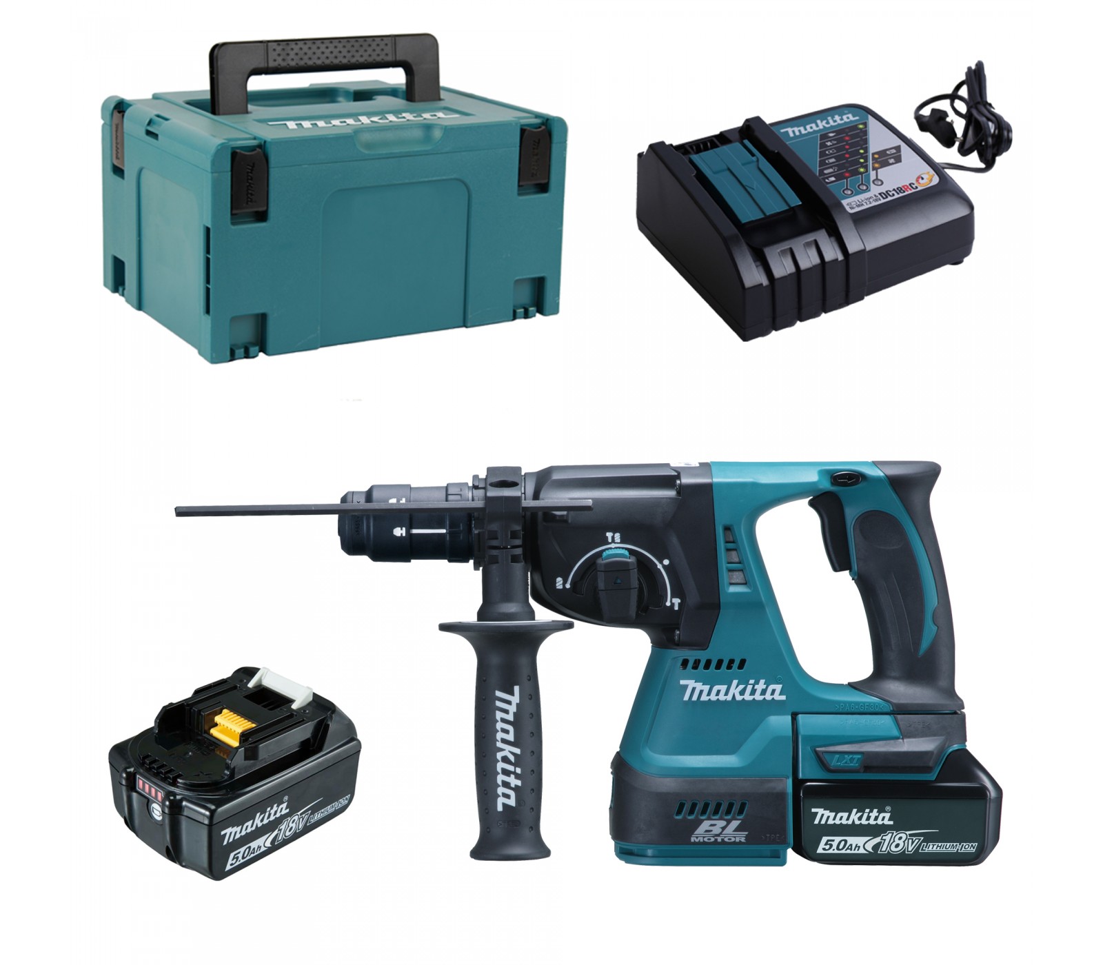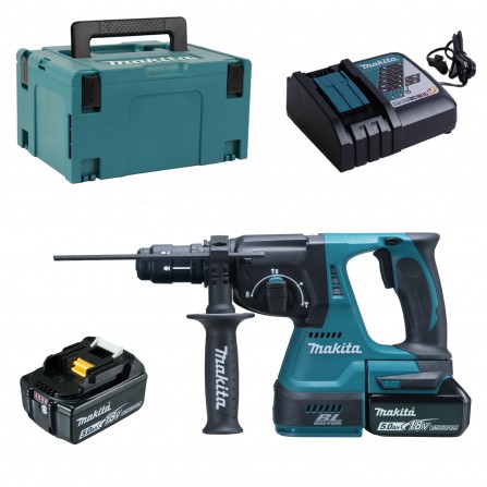 Zestaw akumulatorowego młota udarowo-obrotowego DHR243RTJ, 18 V, SDS-Plus, 2 x 5 Ah, ładowarka + walizka
