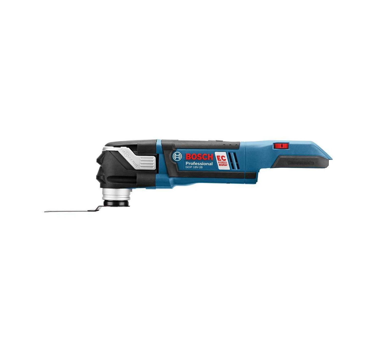 Bosch GOP 18V-28 – universalus 18 V daugiafunkcinis įrankis su StarlockPlus sistema greitam antgalių keitimui.