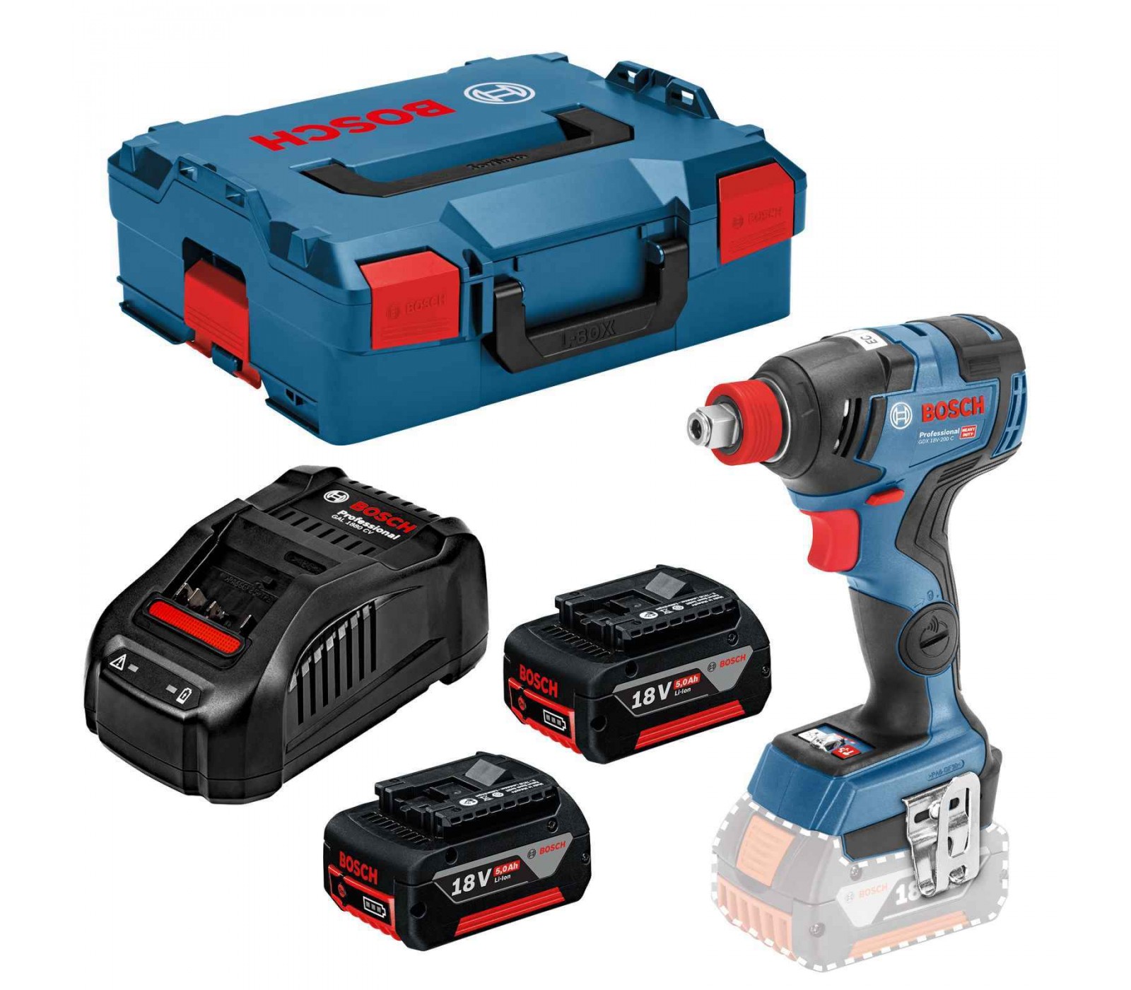 Zestaw akumulatorowej wkrętarki udarowej/klucza Bosch GDX 18V-200 C, 18 V, 2 x 5 Ah, ładowarka + walizka