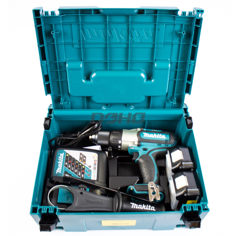 Zestaw akumulatorowych wkrętaków udarowych Makita DHP451RTJ, 18 V, 2 x 5 Ah, ładowarka + walizka