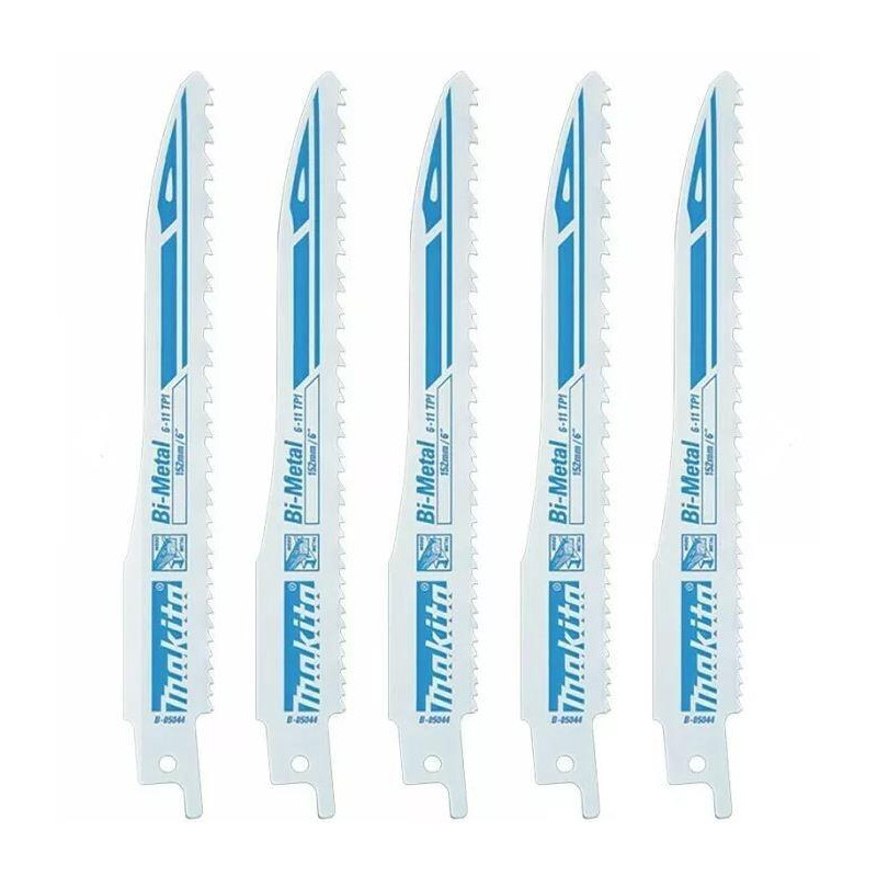 Marka – Makita. Artykuł-B-05044. Długość - 150 mm. Długość części roboczej wynosi 100 mm. Podziałka zębów - 4,3 - 4,3 mm. Obrobiony materiał - aluminium, drewno, plastik. Grubość cięcia - 5 - 100mm. Prawidłowe cięcie – czyste. Ilość sztuk w opakowaniu - 5. Gwarancja - 24 miesiące. Informacje dodatkowe - Długość: 100 mm. Odległość od zęba: 4,3 mm. Grubość blachy: 5-100mm.
