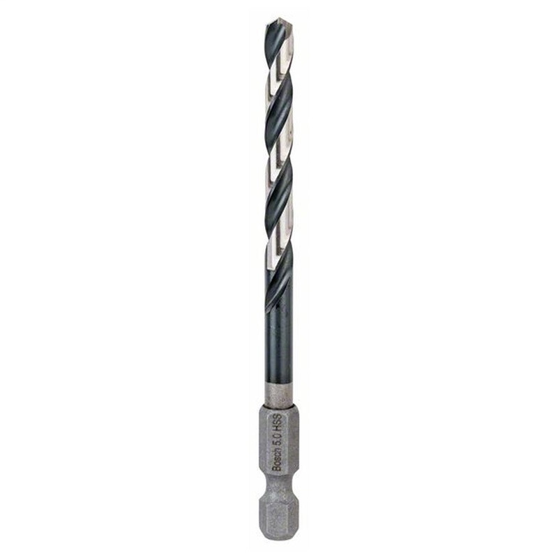 Marka – Bosch. Długość - 9,1 cm. Długość części roboczej wynosi 5,2 cm. Średnica - 5 mm. Typ wiertła - HSS. Rodzaj mocowania - Sześciokąt. Obrobiony materiał - Metal.