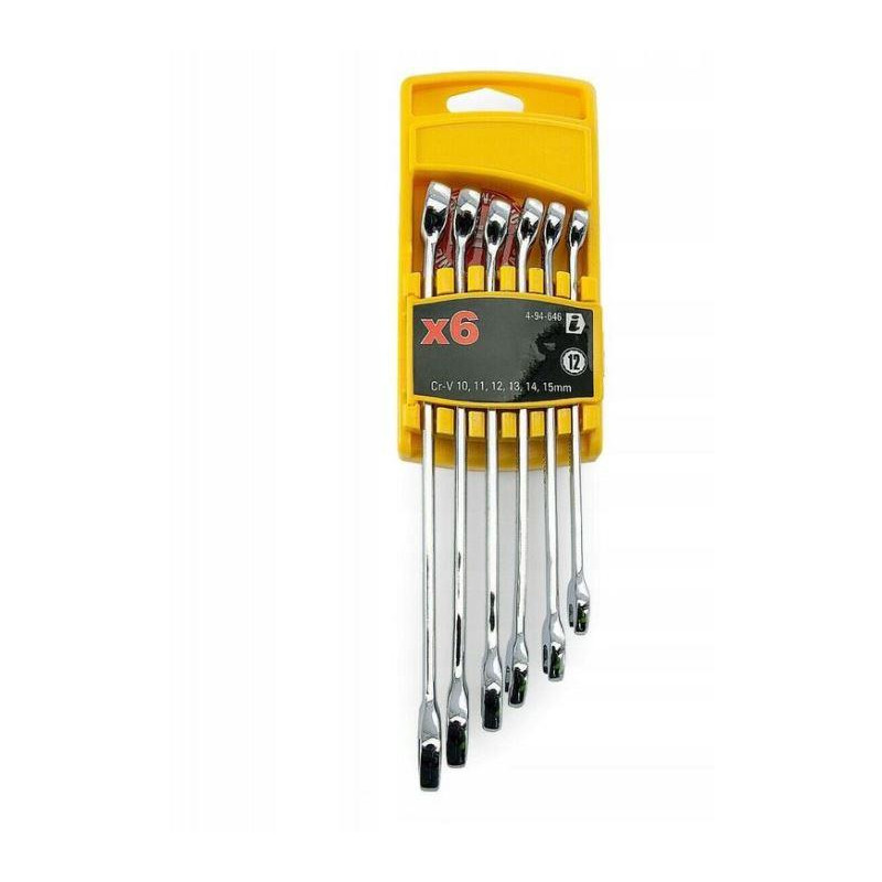 Marka – Stanley. Model- 4-94-646. Artykuł - 4-94-646. Materiał - stop metalu. Ilość części w zestawie - 6. W zestawie - Cr-V: 10; 11; 12; 13; 14; 15 mm. Z etui – tak.