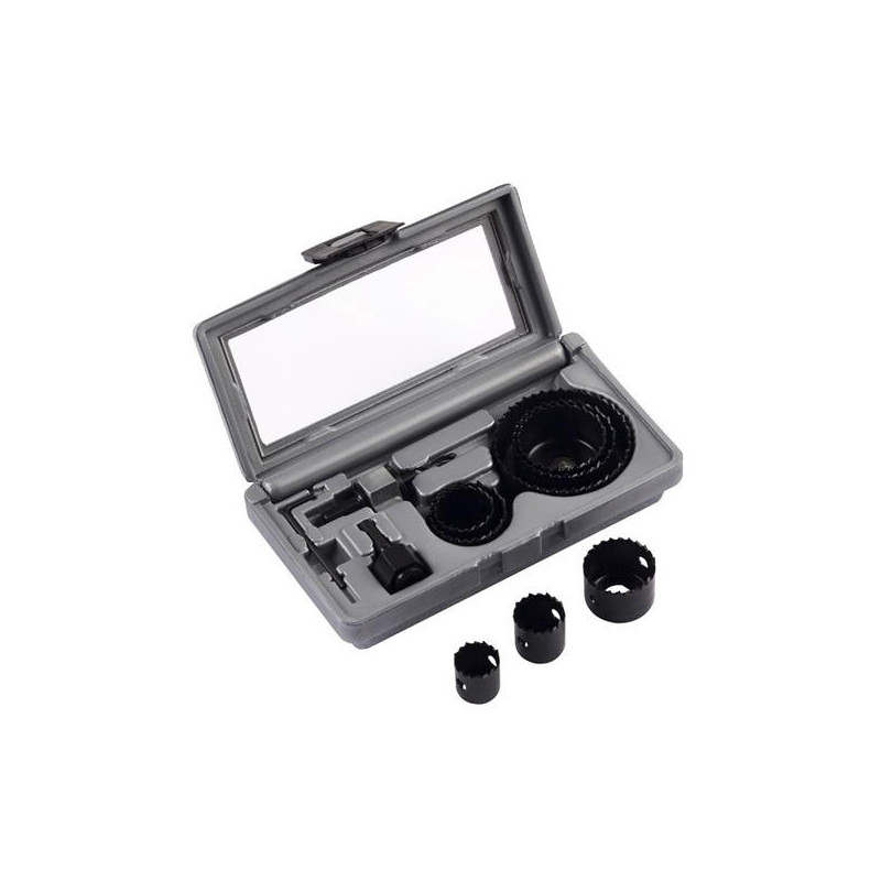 Marka – Bosch. Artykuł - 2607019450. Średnica - 22 - 68 mm. Materiał - stop metalu. Rodzaj mocowania - Sześciokąt. Zestaw zawiera 8 wierteł (Ř 22/25/29/35/38/44/51/68 mm), adapter SW 8, Adapter SW 1/4 (6,35 mm), klucz aluminiowy. Gwarancja - 24 miesiące. Z etui – tak. Informacje dodatkowe - Wiercenie: tworzywo sztuczne, drewno..