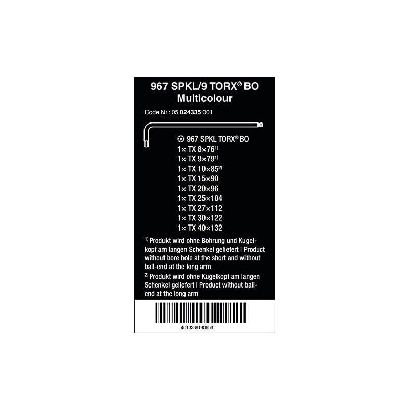 Zestaw kluczy imbusowych Wera 5024335001 (TX8-TX40, 9 szt.)