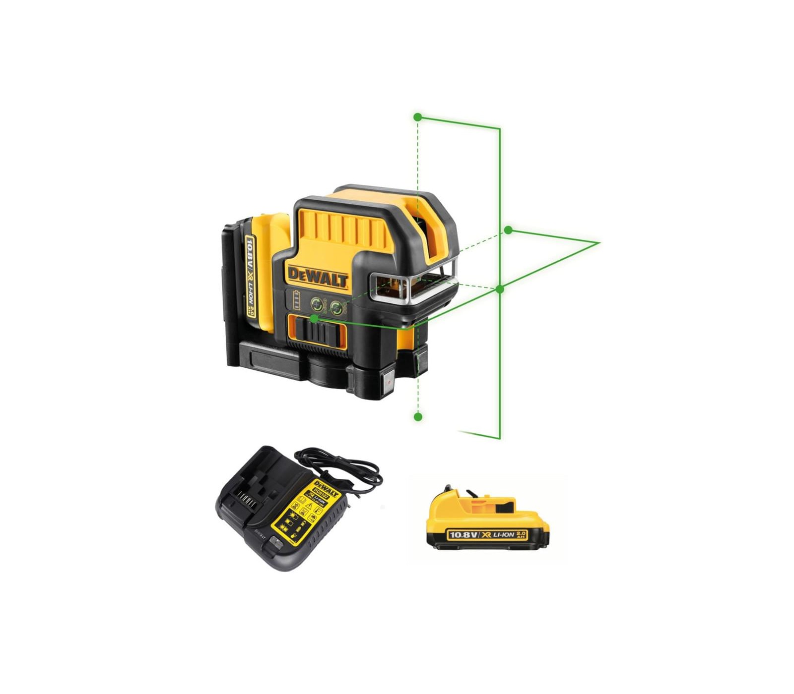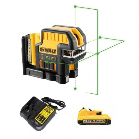Bezprzewodowy zestaw poziomu lasera zielonego krzyża Dewalt DCE0825D1G-QW, 10,8 V, 1 x 2 Ah, ładowarka + walizka