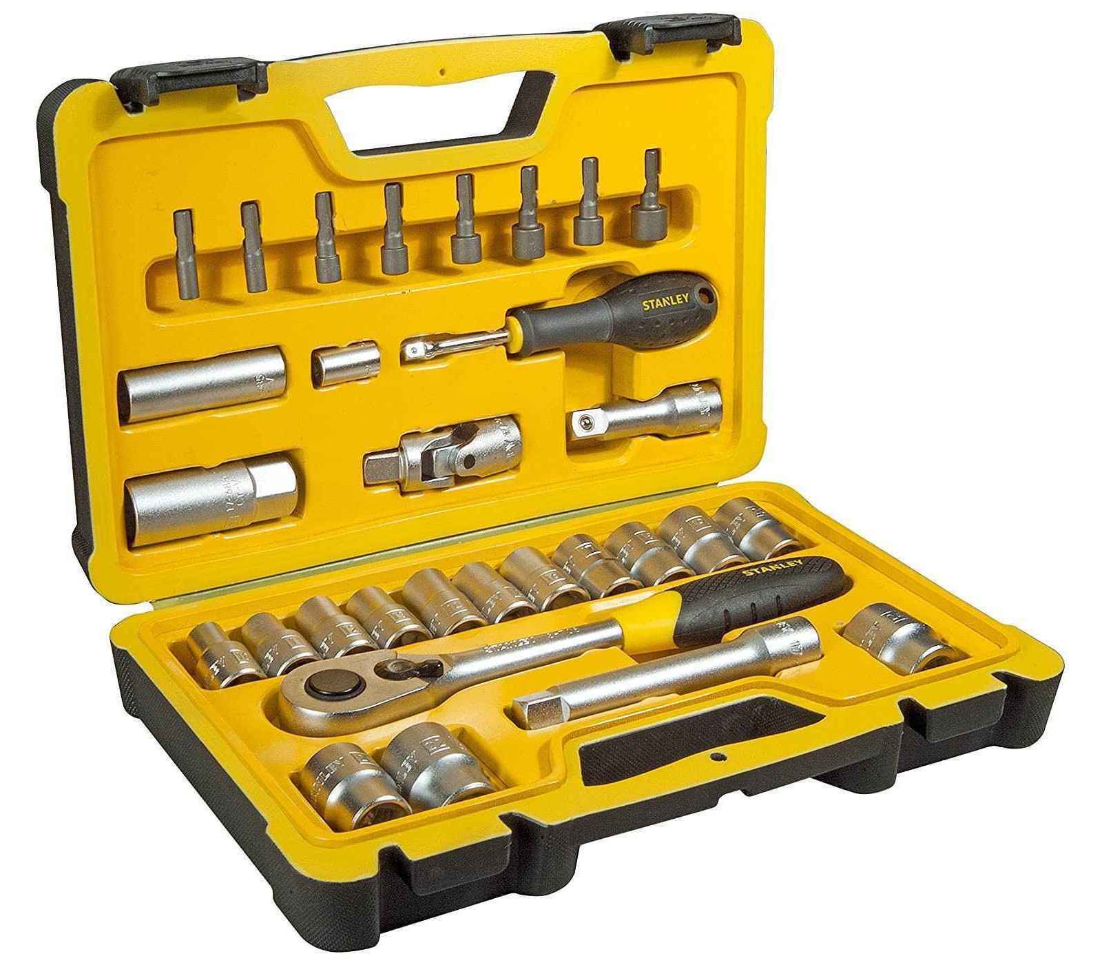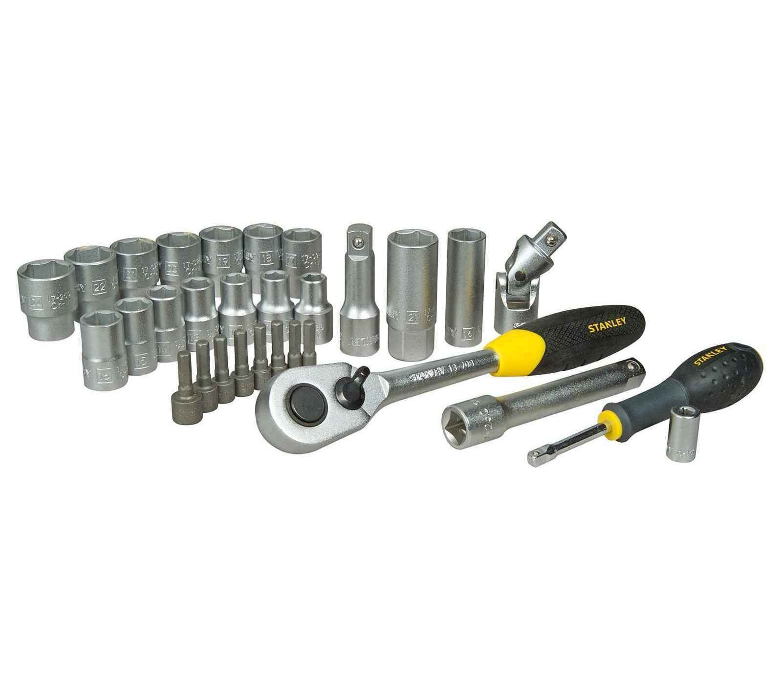 Stanley galvučių rinkinys (STHT0-73929) to wszechstronny zestaw narzędzi, który zawiera 30 różnych nasadek o rozmiarze 1/2 cala. Użytkownicy chwalą go za solidną konstrukcję oraz wszechstronność, idealną do różnych zastosowań w naprawach i majsterkowaniu.