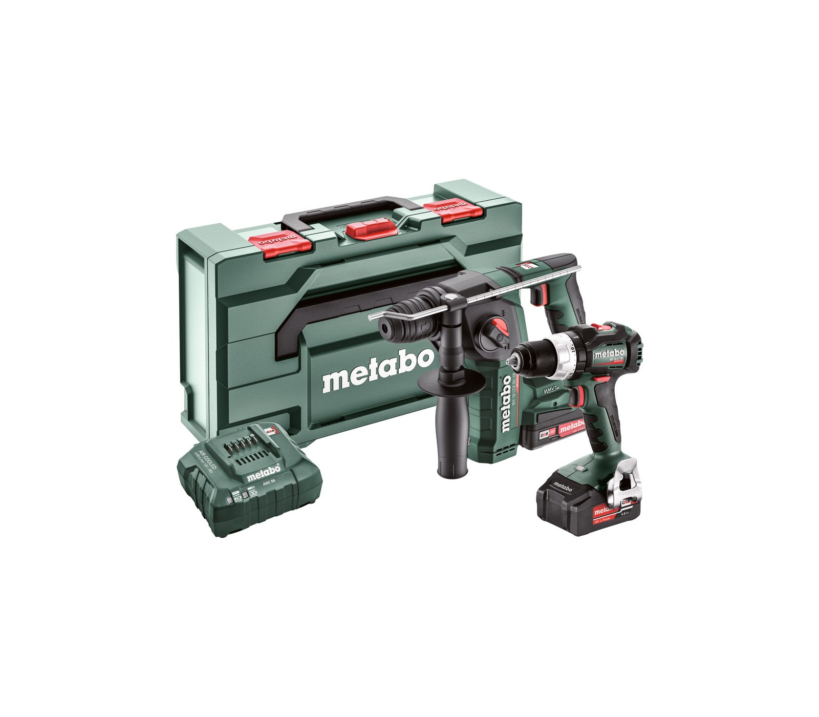 - Przebijak akumulatorowy BH 18 LTX BL 16, uchwyt dodatkowy, wiertarko-wkrętarka akumulatorowa BS 18 LT BL, uchwyt szybkomocujący, 1 x Li-Power (18 V/2,0 Ah), 1 x Li-Power (18 V/4,0 Ah) , ładowarka ASC 55, ''metaBOX 145 L''