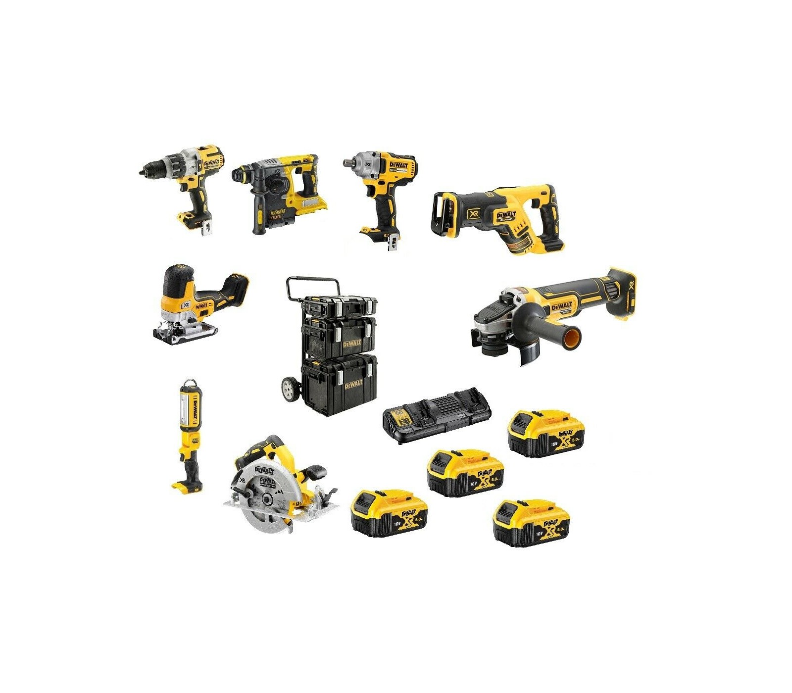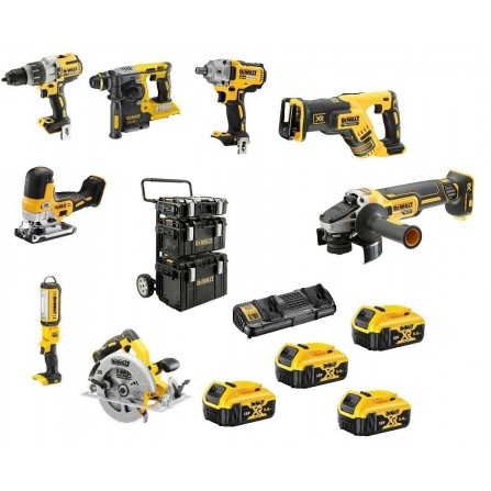 Zestaw narzędzi akumulatorowych Dewalt (DCK856P4-QW) Podwójna ładowarka 18 V 4 x 5 Ah, 3 walizki + wózek